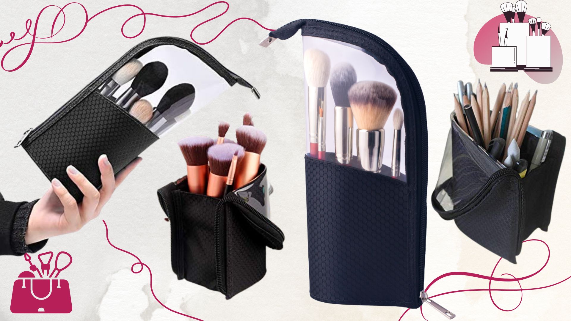 • Z lahkoto sprejme čopiče različnih velikosti . ✅ Zagotavlja enostaven dostop in zaščito vseh vaših čopičev.