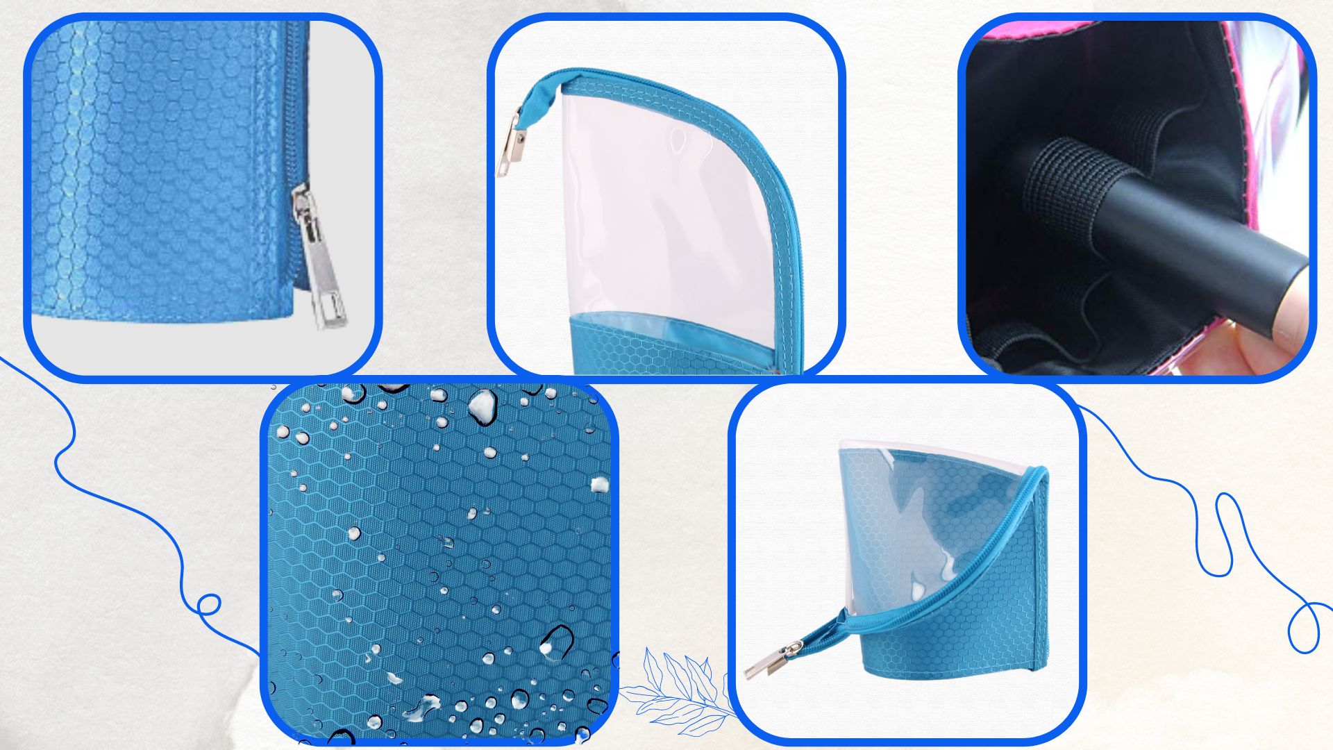 •  – Kozmetična torbica je izdelana iz visokokakovostnega najlonskega vodoodpornega materiala. Enostavna za čiščenje. ojačeno dno in prožna prozorna plošča