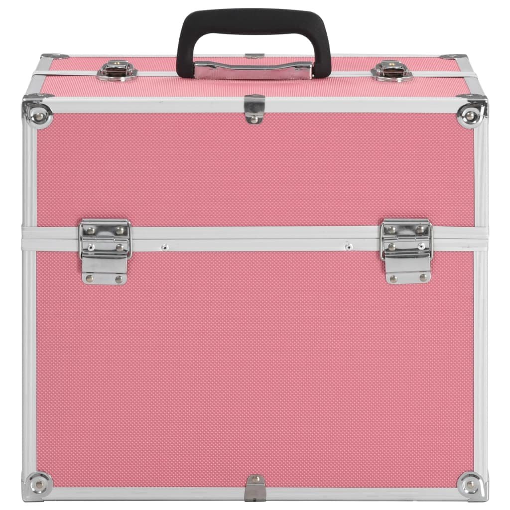 Vidaxl Kovček za ličila 38x23x34 cm roza aluminij