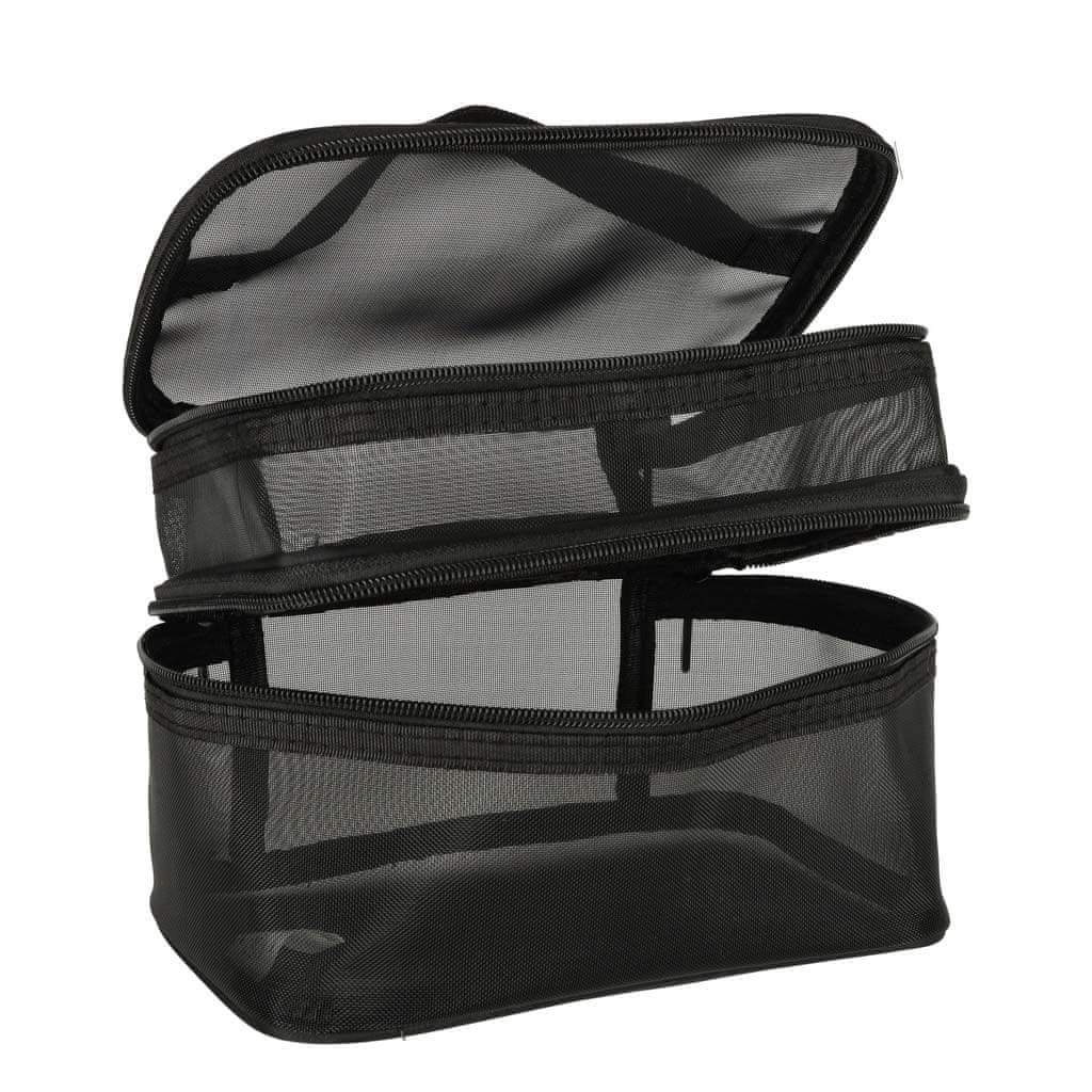 POTOVALNI MAKE-UP ORGANIZATOR ZLOŽLJIVA TORBA ZA SHRANJEVANJE KOZMETIČNIH PRIPOMOČKOV ČRNA Črna potovalna kozmetična torba: Idealna za potovanja in domačo uporabo, Vsebuje dva predala za enostavno organiziranje kozmetike, Opremljena s praktičnim ročajem, Izdelana iz mrežice, ki omogoča enostavno iskanje kozmetike. Tehnični podatki: Barva: črna Material: poliester Dimenzije kozmetične torbice: 21 cm x 13,5 cm x 14 cm Dimenzije embalaže: Dimenzije: 27 cm x 15 cm x 4 cm Praktična potovalna kozmetična torbica – obvezna oprema na vsakem potovanju. Zahvaljujoč dvonivojski zasnovi vam omogoča organiziranje vaše kozmetike. Zapenja se z dvostransko zadrgo. Narejen je iz mrežastega materiala, ki omogoča enostavno iskanje skritih izdelkov. Ima praktičen ročaj za udobno prenašanje. Izdelek je pakiran v folijo.