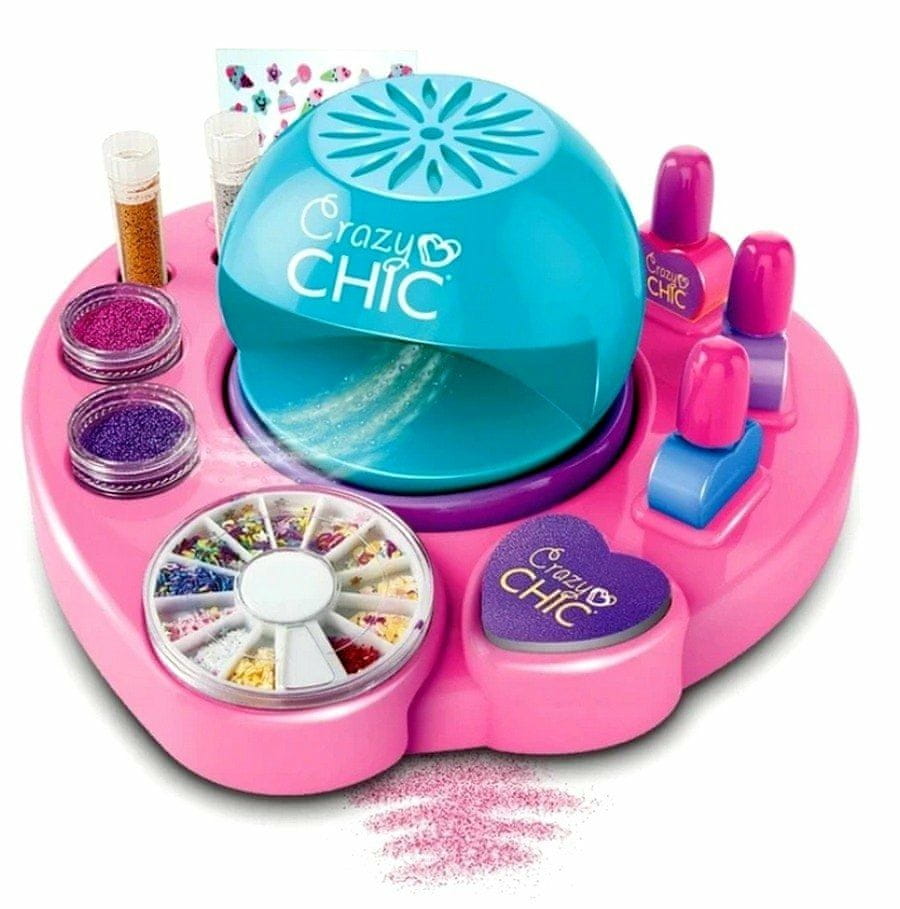 Ponudite si komplet Crazy Chic Make up, ki vsebuje sodobne izdelke za oblikovanje nohtov. Vključeni so laki za nohte, varni za otroke, okraski za nohte, bleščice in sušilnik za nohte.