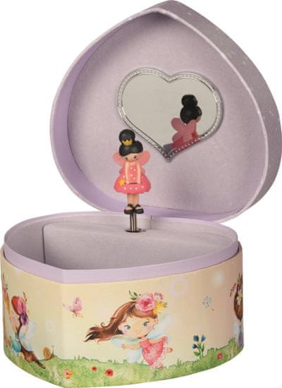 Škatla za nakit v slogu glasbene skrinjice bo navdušila male dame, ki želijo svoj nakit pravilno shraniti. Ko škatlico odprete, se začne igrati znana melodija iz Labodjega jezera, mala vila pa zapleše pred ogledalom v obliki srca. Dimenzije škatlice: 19,3 × 11 × 8,5 cm. Opomba: izdelek ni igrača, temveč dekorativni predmet. GOKI je eden najpomembnejših evropskih proizvajalcev igrač visoke pedagoške in didaktične kakovosti. Podjetje poudarja varnost igrač, njihovo zdravstveno neoporečnost in skrb za obnovljive vire. Les se pridobiva tam, kjer lahko raste. Uporabljajo se naslednje vrste lesa: javor, bukev, oreh, lipa, jesen, bor, breza in kavčukovec. Barve in laki so nabavljeni pri manjših proizvajalcih.