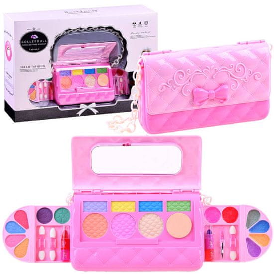Elegantna torbica za ličila z ogledalom + dodatki za ličenje zagotovo bo prinesla veliko zabave vsaki mali zvezdnici. Komplet vsebuje kar 28 elementov, s katerimi boste lahko ustvarili čudovit make-up. Med drugim vsebuje bleščice za ustnice, čopič za roke, senčila in njihove aplikatorje, ki vam bodo pomagali ustvariti osupljiv make-up za vsako priložnost. Torbica je v celoti izdelana iz plastike, ima varno ogledalo, ki vam bo zagotovo pomagalo pri nanašanju senc.