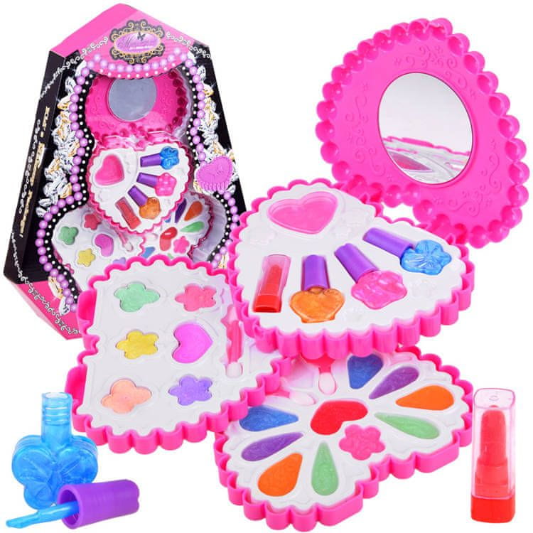 Pestra paleta kozmetike v obliki srca za ličenje za malo modno navdušenko, ki bo zagotovila osupljiv videz ličil za vsako priložnost. Paleta v obliki srca je izdelana iz plastike, ima zaščitno ogledalo in zanimiv zaključek.