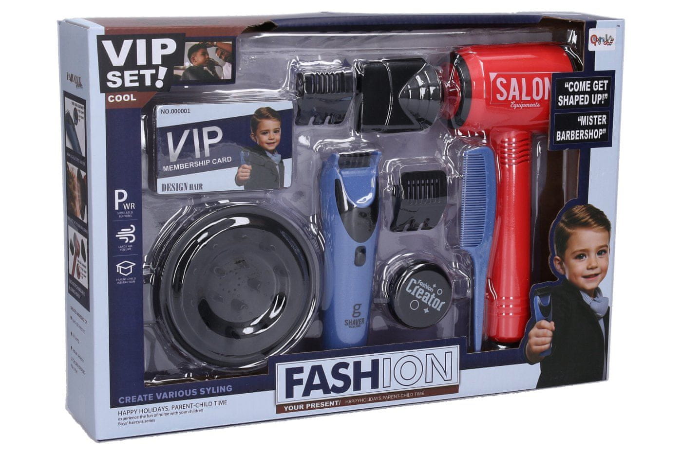 Barber kozmetični set za dečke ponuja vse, kar potrebuje mali frizer. Vključuje funkcionalni sušilec za lase 20 cm, strižnik za lase, glavnik, nastavke in člansko izkaznico za obisk salona. Baterije 2×AAA za sušilnik za lase in baterije 3×AAA za sušilnik za lase (niso vključene). dimenzije paketa: 36 × 25 × 6,8 cm. Starost: 3+