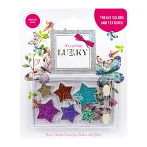 Lukky kremno senčilo z bleščicami in čopičem v 6 različnih odtenkih. Celoten opis