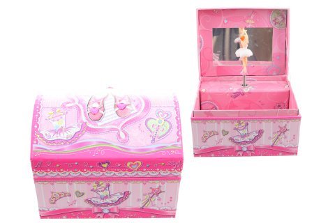 Playing box nakitna skrinja. V notranjosti skrinjice za nakit sta ogledalo in balerina, ki pleše in igra, ko obrnete ključ. Velikost približno 13 × 10 × 10 cm. Pakirano v plastični vrečki. Izdelek ni igrača.