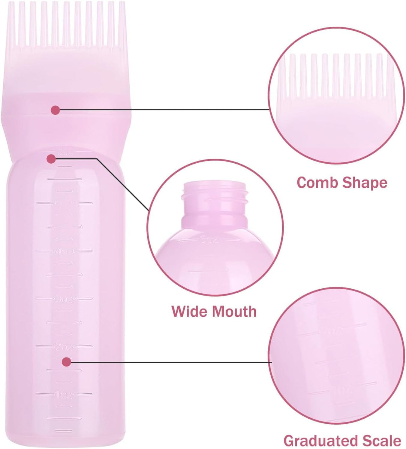 Nikcorp Steklenička z aplikatorjem in glavnikom za nanašanje barve, olja ali balzama na lase in lasišče, 160 ml, roza barve