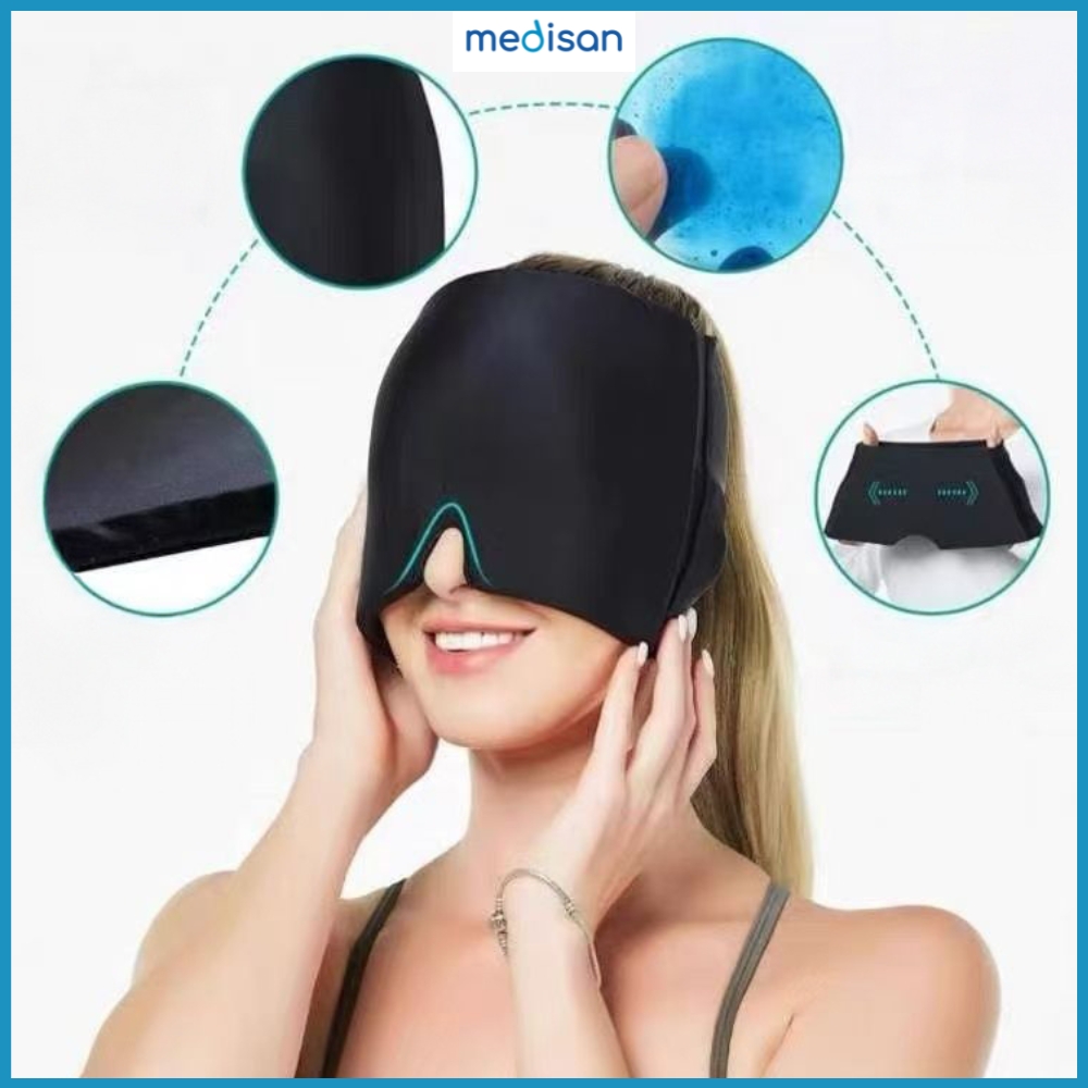 Naglavni trak za migrensko bolečino, hladilni obkladek z gelom, zatemnitveni klobuk Celoten opis