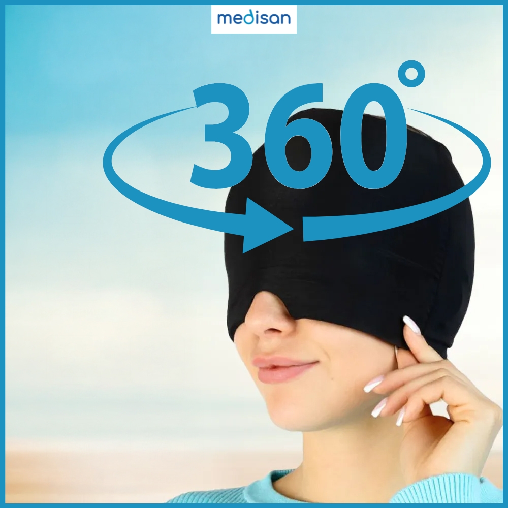 se nahaja na celotni površini maske – tako na sprednji kot na zadnji strani. To hlajenje deluje enakomerno po 360 stopinjah , kar zagotavlja maksimalno olajšanje glavobolov, migren in napetosti ter učinkovito lajša stres. Ne glede na to, kje čutite nelagodje, maska