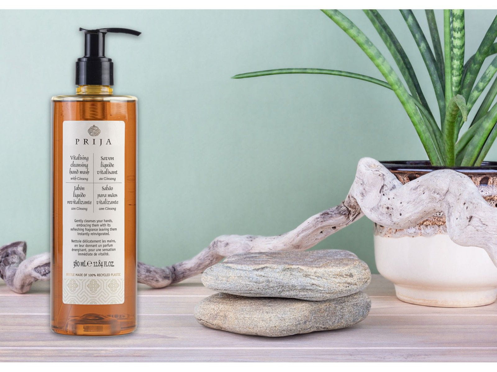 Vsebuje:1 x Vitalizirajoče čistilno milo za roke z ginsengom v 380-mililitrski steklenički1 x vlažilna krema za roke in telo z vitaminom E v 380-mililitrski plastenki