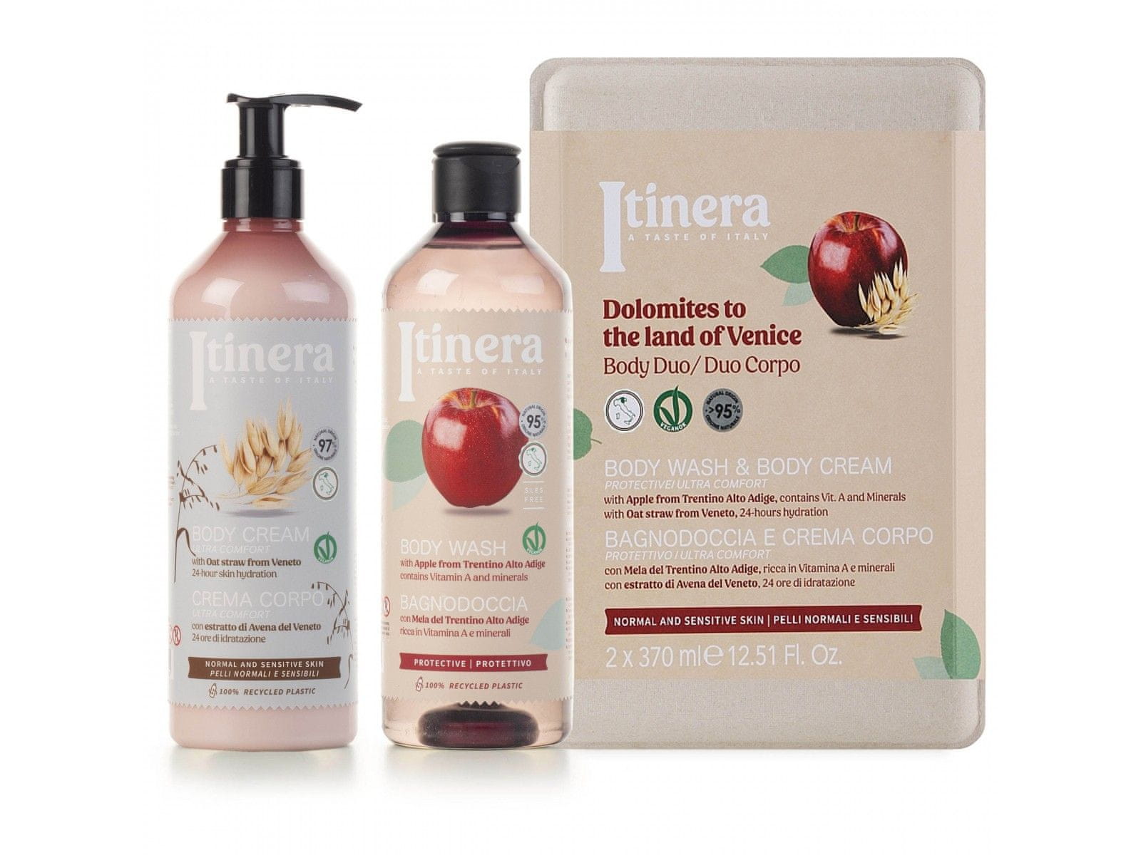 sarcia.eu ITINERA Darilni set: zaščitni gel za prhanje + losjon za telo z ovesom iz Veneta 2x370 ml