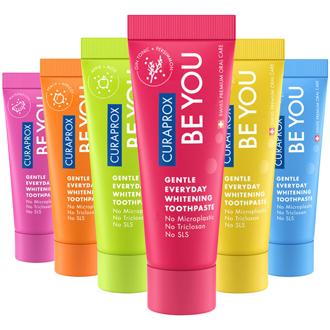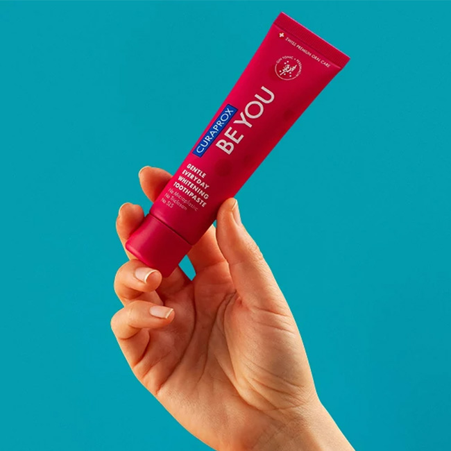 Zobna pasta Curaprox Be You je nov izdelek v švicarski družini izdelkov za ustno nego CURAPROX. Ta moderna belilna pasta vsebuje koristne aktivne sestavine, ki skrbijo za zdravje zob in dlesni.