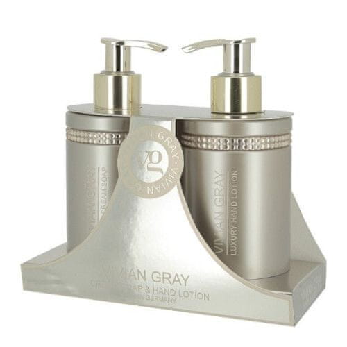 Kosmetická sada s vůní zeleného čaje a citrusů. Obal je ozdobený krystalky.   Sada obsahuje: Krémové mýdlo na ruce (Luxury Cream Soap) 250 ml Mléko na ruce (Luxury Hand Lotion) 250 ml  . Celoten opis