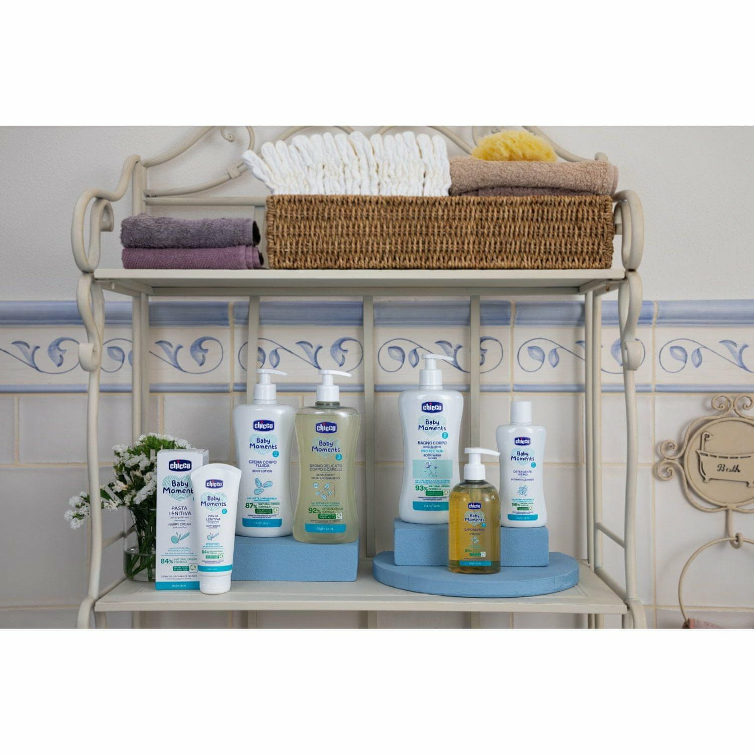 Kopalno olje Chicco Baby Moments vsebuje 93 % naravnih sestavin za vzdrževanje hidro – lipidno ravnovesje otroške kože. Obogateno z oljem bombažnih semen in vitaminom E.