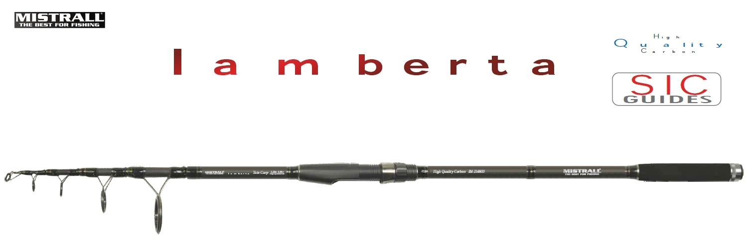 Mistrall Lamberta Tele Carp je močna teleskopska palica, ki jo je zelo enostavno prevažati. Ta kraparska palica je bila zasnovana na sodoben način z uporabo najkakovostnejših karbonskih vlaken. Palica je opremljena z zelo močnimi dvokrakimi vodili, ki v kombinaciji z visoko elastičnostjo in prožnostjo omogočajo manj izkušenim ribičem doseganje dolgih metov s kraparskimi sistemi. Poleg tega bo velika rezerva moči zadovoljila potrebe tudi najbolj izkušenih ribičev, ki ciljajo na največje krape s dno.
