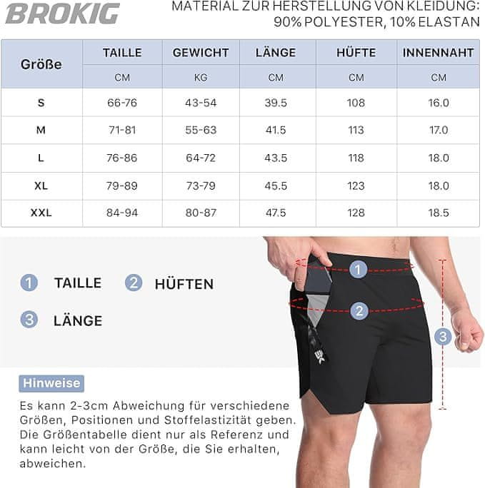Moške športne kratke hlače BROKIG v črni barvi so kombinacija udobja, funkcionalnosti in stila. Zahvaljujoč lahki in zračni tkanini ter praktičnim žepom so idealna izbira za treninge in aktivnosti na prostem. Ne odlašajte, zagotovite si svoje kratke hlače še danes in izkusite udobje in svobodo gibanja med vašimi aktivnostmi.