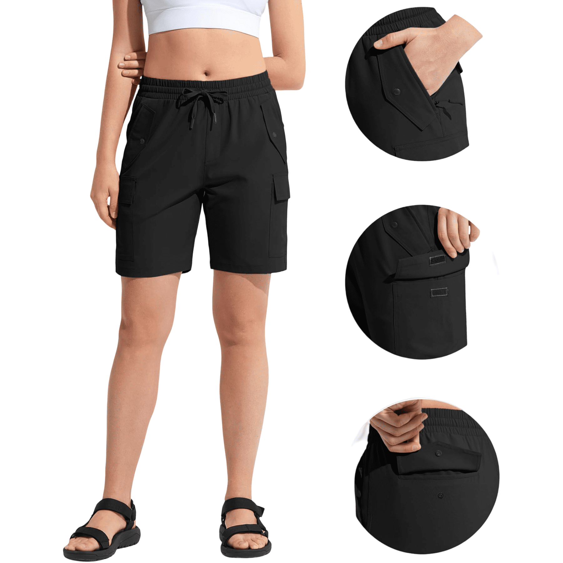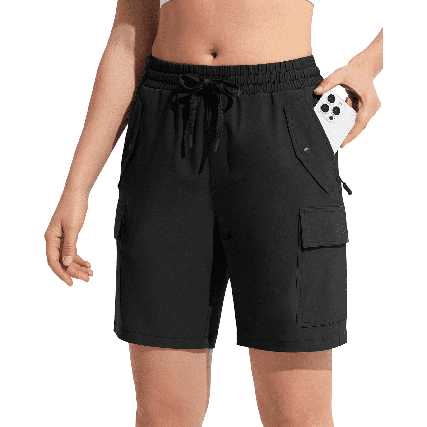 Nikcorp Ženske cargo športne kratke hlače za treking in trening, hitrosušeče, lahke s šestimi žepi, črne barve, velikost XL