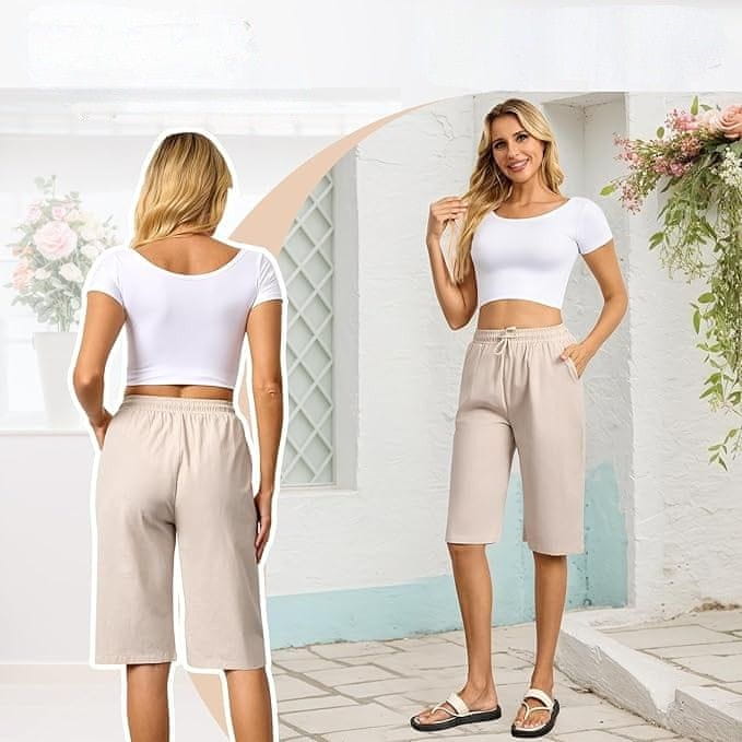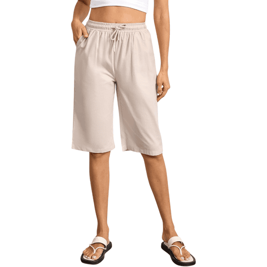 Nikcorp Ženske kratke hlače Bermuda, 100% bombaž, bež barva, nastavljiv elastičen pas z vrvico, globoki stranski žepi, velikost S