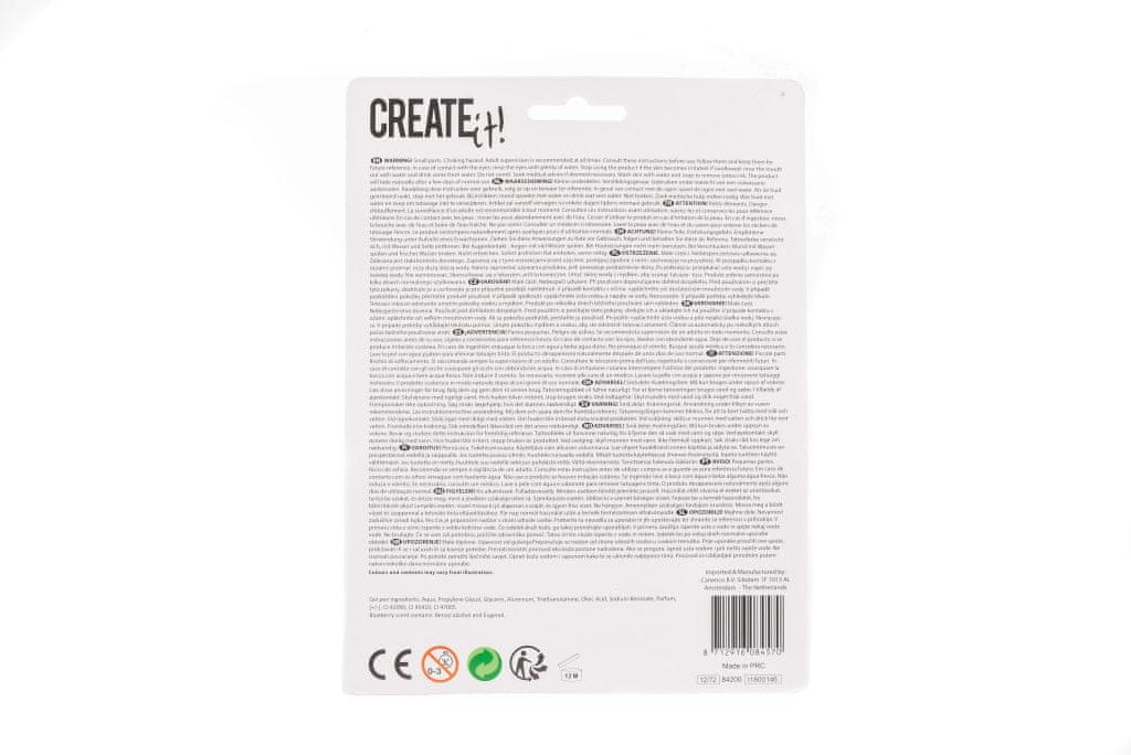 Set za tetoviranje v šestih barvah – rožnati, modri, vijolični, zeleni, oranžni in srebrni. Komplet vključuje dišeča pisala za tetoviranje in šablone. Dermatološko testirano v EU, ni škodljivo za zdravje.