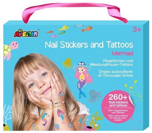 Zabavne in čudovite tetovaže z nalepkami za nohte za deklice z morskimi deklicami, hobotnicami in drugimi morskimi živalmi. Otroci bodo navdušeni. Skupaj več kot 260 tetovaž in nalepk v priročnem paketu.