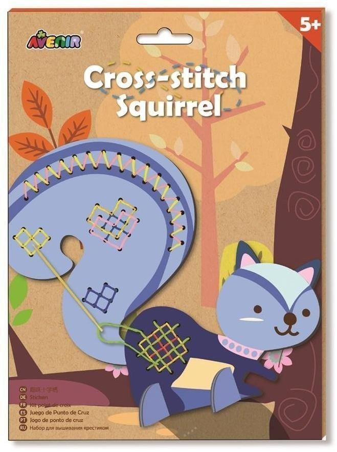 Ustvarite čudovito mojstrovino s predhodno izrezano šablono veverice. Na perforirano šablono preprosto izdelajte križni šiv z barvno prejo in jo nato razstavite.