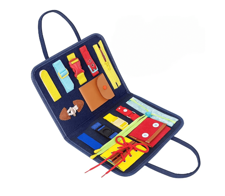 1. MEHKO IN VARNO: Dollcini, dizajn torbice, z volnenim materialom za osnovo in bombažem za majhen del, nežen in varen za otroško igro. Busy board je ena najbolj popolnih Montessori igrač za majhne otroke.