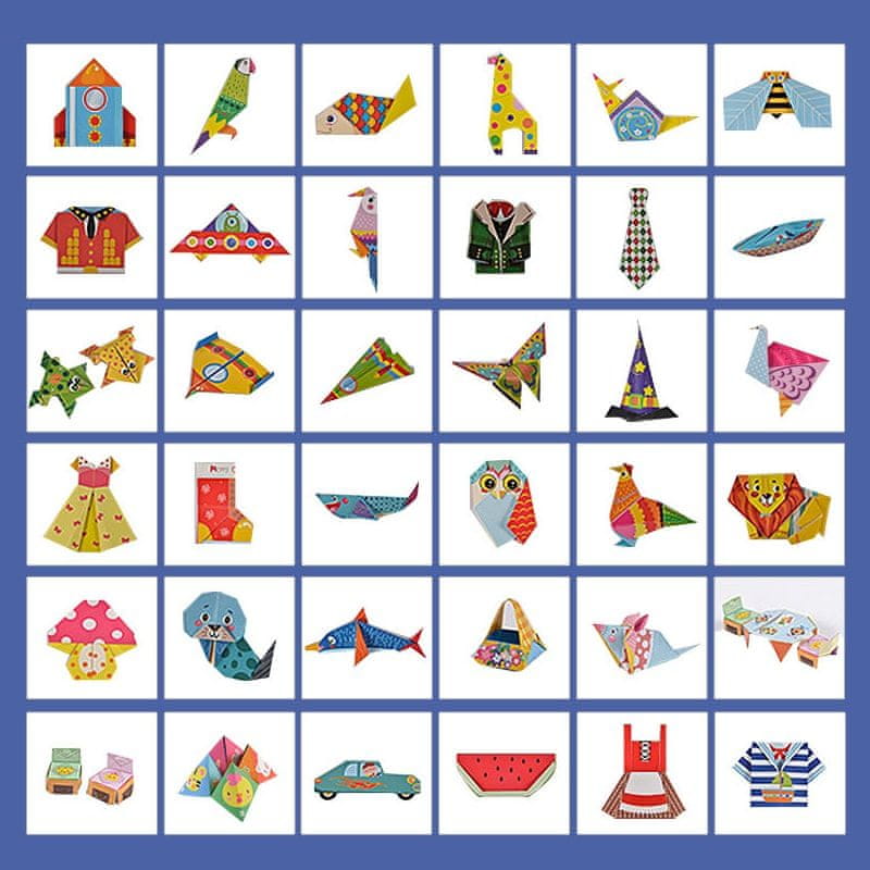 ORIGAMI PAPIRJI ZDAJ Z NOVIMI VZORCI Velik komplet 144. origami papirjev, s katerim boste ustvarili prisrčne modele kot so rože, živali, rakete, ladje in več.