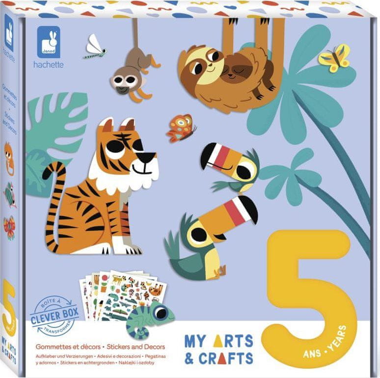 Kreativni set za otroke od 5. leta starosti z nalepkami in okraski z motivi džungle.