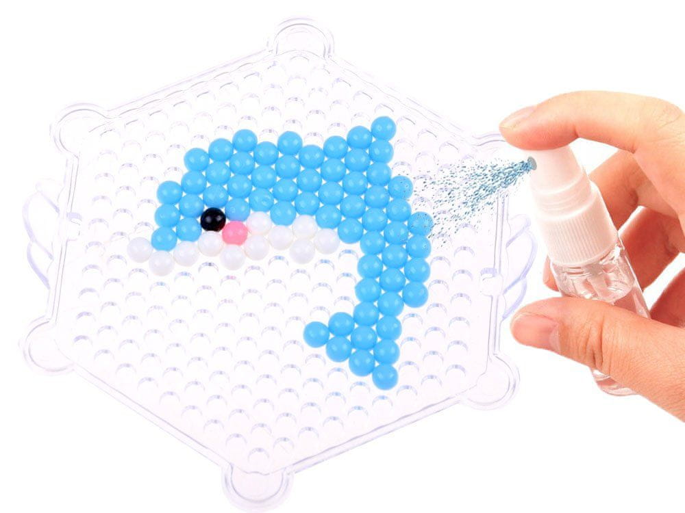 Čarobni set vodnih kroglic je ustvarjalni set, s katerim lahko sami ustvarite čudovito sliko. V kompletu so že pripravljeni vzorci, zahvaljujoč katerim bo lažje začeti igrati. Razporejene perlice lahko poškropite z vodo in ustvarite obesek za ključe ali 3D figurico. Naredi sam igračo. Odlična zabava ne le za najmlajše. Ponudba za domiselne in radovedne otroke. Komplet nam daje neomejene možnosti, da ustvarimo svoj svet, poln živih barv in nenavadnih idej. Uporabite svojo domišljijo in učinek vas bo presenetil.