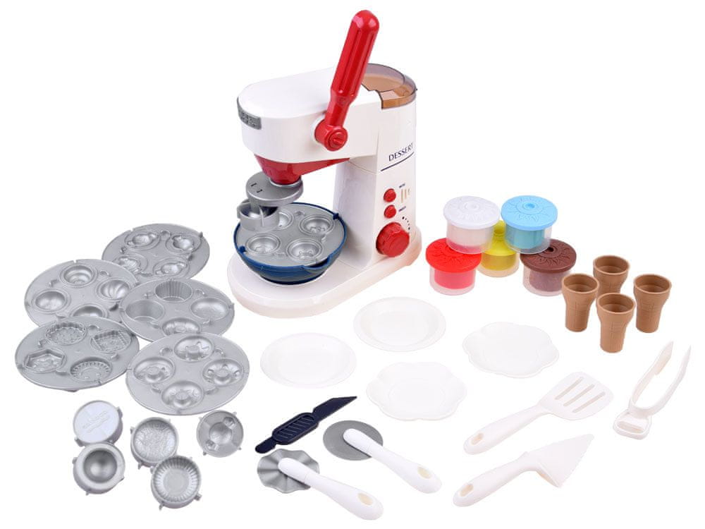 Interaktivna slaščičarna je za vsakega malega slaščičarja. Fantastičen komplet za ustvarjanje najlepših sladic in slaščičarskih okraskov za malega slaščičarskega virtuoza. Stroj zagotavlja izdelavo najlepših okraskov iz plastične mase, sladic in piškotov.
