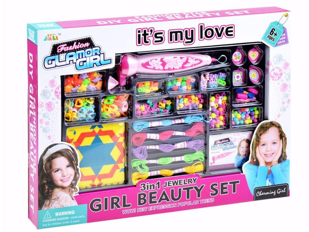 Kreativen komplet pisanih okraskov za lase bo odlično izkoristil prosti čas vašega otroka. Morda bo zaradi tega kompleta vaš otrok razvil strast do ustvarjanja novih pričesk, okraskov in nakita. Komplet je pakiran v privlačni kartonski škatli.
