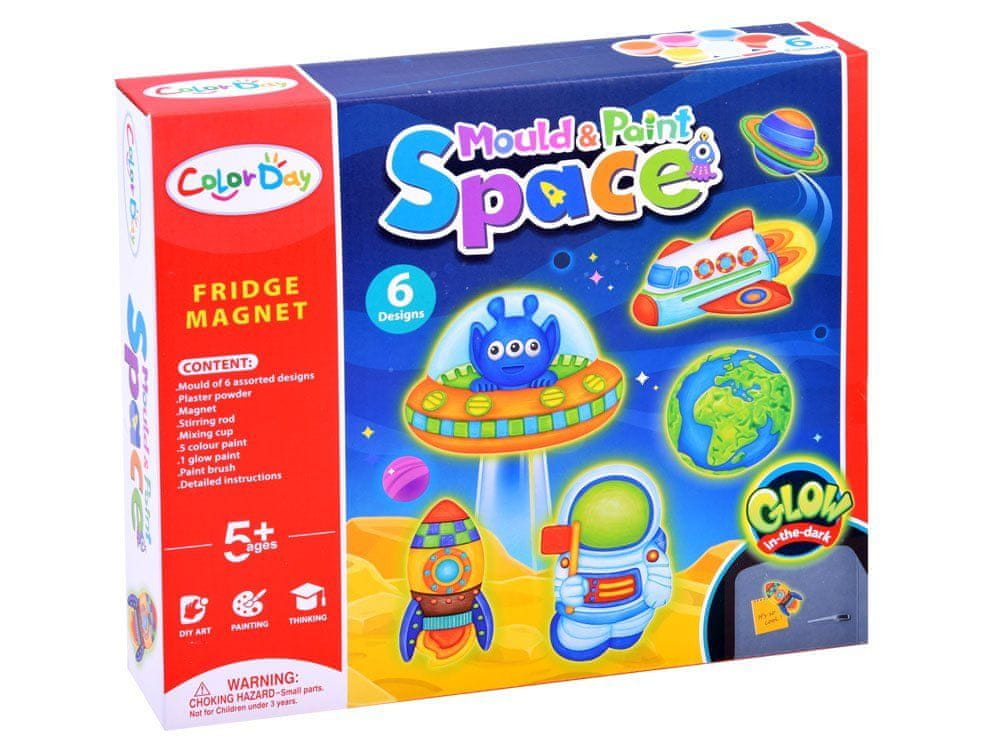 To je odličen komplet za ustvarjalno igro, s katerim lahko ustvarite vesoljske magneteóiceówka. Otrok mora sam pripraviti odlitke in jih nato pobarvati po svojih željah. Komplet omogoča izdelavo 6 različnih magnetov. Komplet je pakiran v privlačni škatli, ki je kot nalašč za darilo.