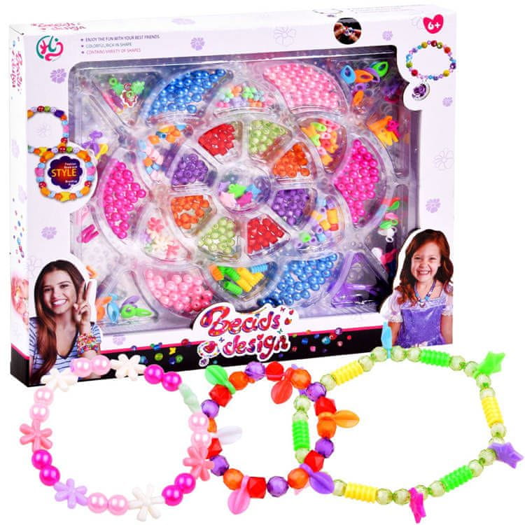 Za igro s koralčki se bo otrok naučil potrpežljivosti, natančnosti in razvijal ročne spretnosti. Ustvarjanje in izumljanje novih vzorcev in različic nakita odlično vpliva na razvoj domišljije in spodbuja ustvarjalnost. Komplet je pakiran v markantni kartonski škatli.