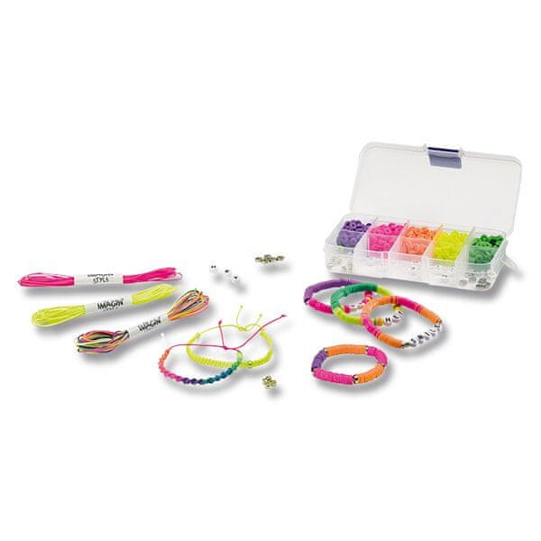 Zapestnico lahko izdelate v dveh različnih tehnikah – tkanju in nizanju. Tkanje je enostavno zaradi priloženega priročnika in preproste tehnike. Navlekanje je še lažje, saj uporabite le barvne niti, kroglice in kovinske delilnike. Z združevanjem niti, kroglic in delilnikov lahko ustvarite 14 modnih zapestnic, Komplet vsebuje:, * 3 barvne neelastične niti (3 × 450 cm), * 1 belo elastično nit (1 × 300 cm), * barvne kroglice Heishi (neonsko rumena, neonsko oranžna, neonsko roza, zelena, vijolična: Maped Creativ je zbirka ustvarjalnih kompletov francoske blagovne znamke Maped, tradicionalnega proizvajalca kakovostnih šolskih in pisarniških potrebščin. Zbirka Maped Creativ v več serijah ponuja ustvarjalne dejavnosti za otroke od 1. leta starosti – izdaja EARLY AGE, do 6+ let – izdaja BOARD ACTIVITIES. Izdaja MINIBOX je primerno darilo za vsak obisk družine z otroki. Izdaja COLOR PLAY za otroke od 4. leta dalje premika meje ustvarjalne igre na višjo raven.