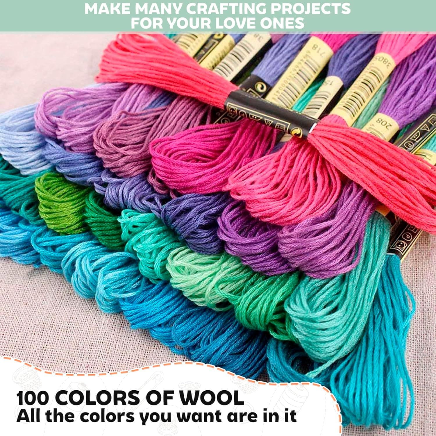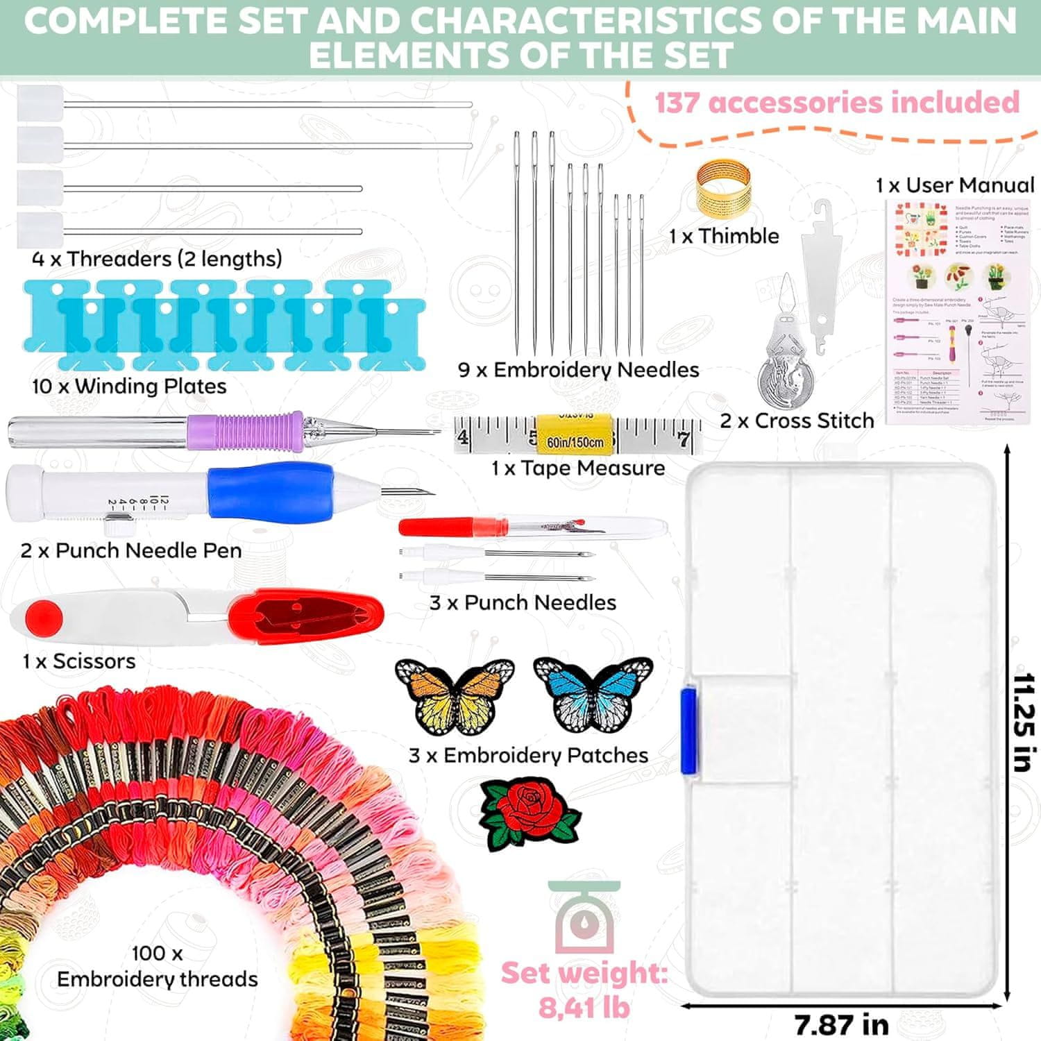 Vsebuje vse od najboljših niti, pa do različnih pripomočkov, ki olajšajo učenje in izboljševanje vaših veščin vezenja.