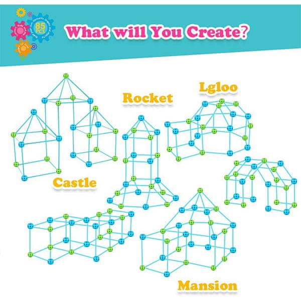 S konstrukcijskim setom lahko zgradite vse od najpreprostejših oblik, kot je kocka ali hiša, do arhitekturnih replik veličastnih zgradb, kot je npr. Big Ben ali Eifflov stolp. Kreativna igra je primerna za 1 ali več otrok, saj lahko sodelujejo in skupaj rešujejo izzive.