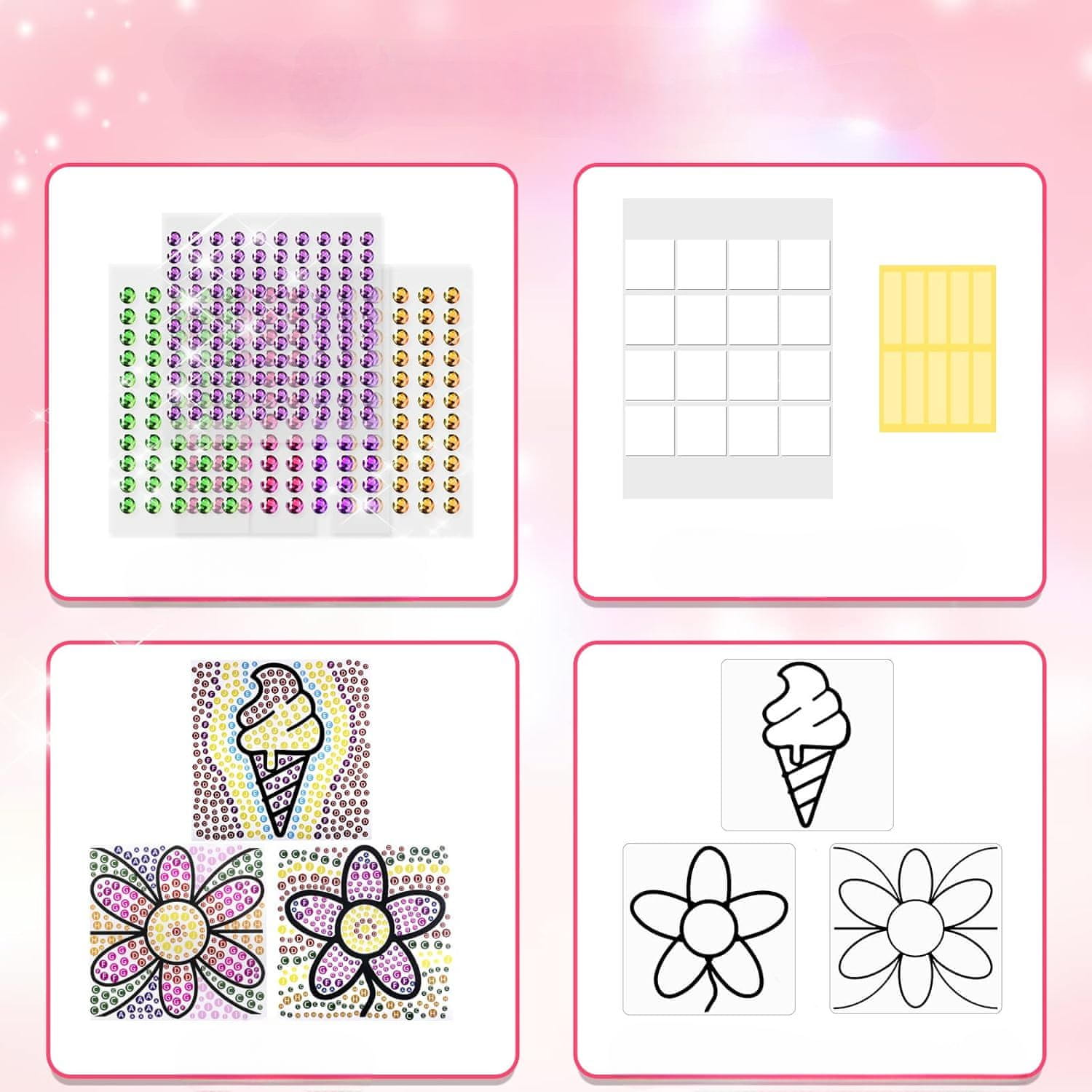 Nikcorp Komplet za slikanje z diamanti za otroke, 3 kosi, 17x17 cm, ustvarjalni set z več kot 1100 bleščečimi kristalčki