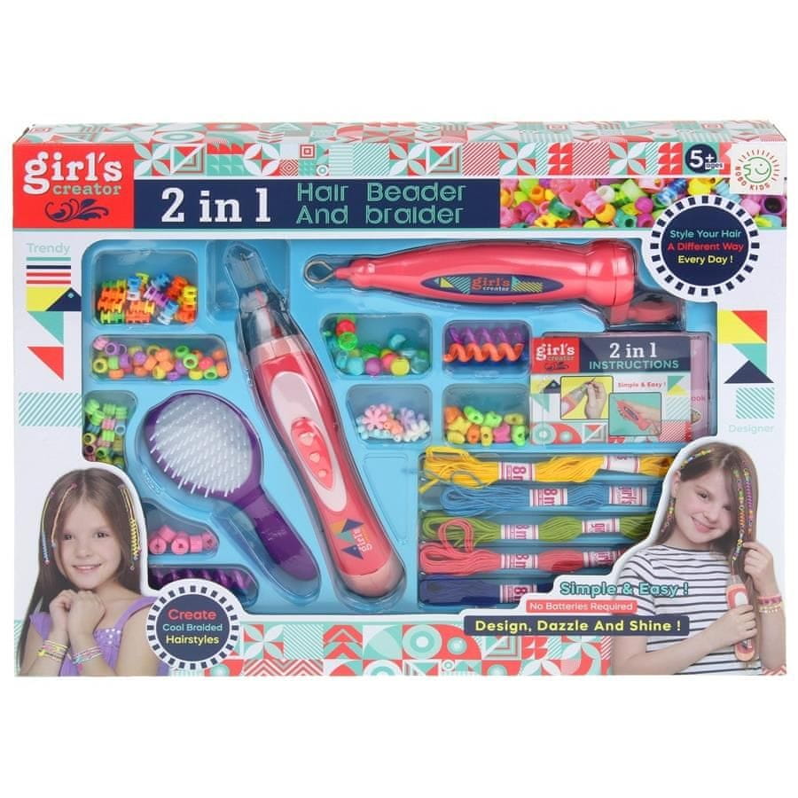 Komplet za šivanje perlic je kot nalašč za vse mlade strokovnjake, ki uživajo v česanju in oblikovanju las ter se želijo preizkusiti v vlogi frizerja. Stroji za vpletanje niti in vpletanje perlic v lase so majhni, priročni in enostavni za uporabo. Poleg tega je spodaj preveden uporabniški priročnik za oba stroja. Zahvaljujoč takšni igri se otroci učijo ustvarjalnosti, urijo ročne spretnosti in potrpežljivost. Set vsebuje vse potrebne pripomočke za ustvarjanje čudovitih pričesk, ki bodo zadovoljile potrebe vsakega mladega profesionalnega frizerja.