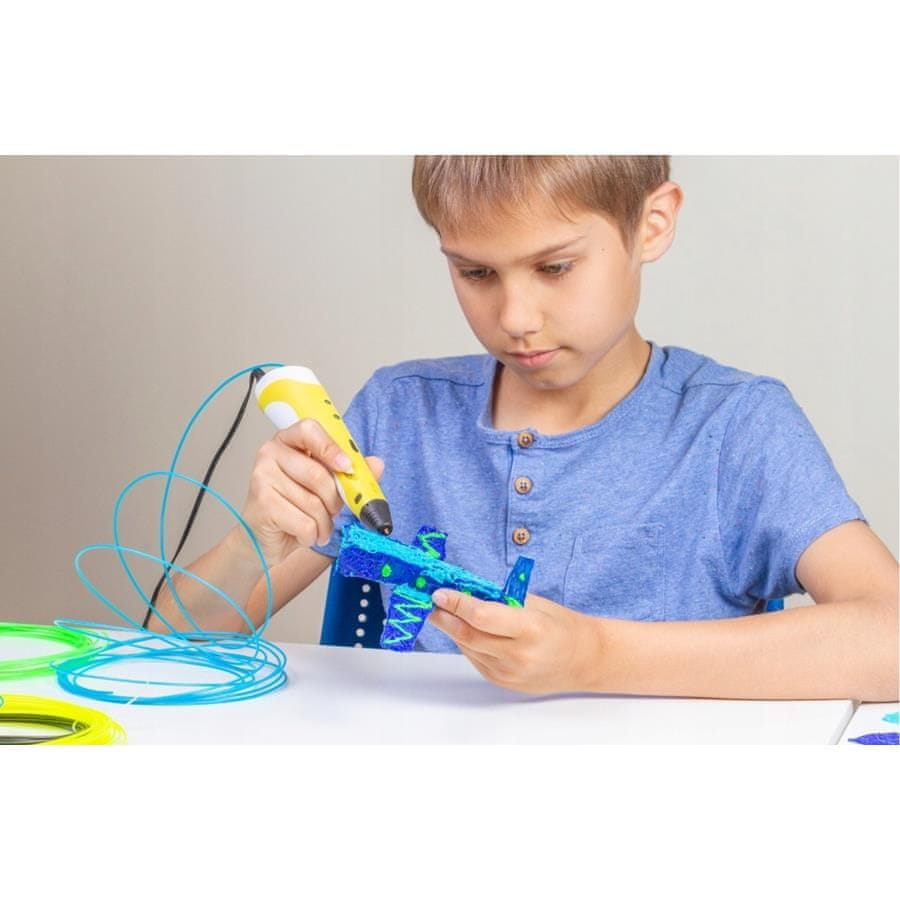 3D pisalo je odlično orodje ne le za otroke, ampak tudi za odrasle. Odličen izdelek, ki razvija ustvarjalno mišljenje, prostorsko domišljijo in ročne spretnosti. Revolucionarna naprava, ki vam bo pomagala pri učenju tehnik 3D tiskanja. Pero vam bo omogočilo, da ustvarite kakršno koli prostorsko obliko, ki si jo zamislite! Komplet omogoča ustvarjanje tridimenzionalnih predmetov v realnem času. Samo vstavite poseben vložek, ki se segreje v notranjost naprave, zaradi česar pridobi plastične lastnosti in otrokom omogoča ustvarjanje poljubnih oblik.