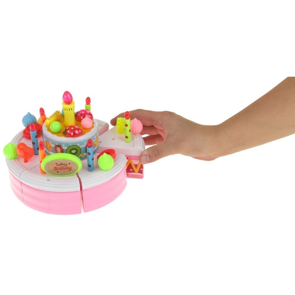 Večnadstropna rojstnodnevna torta, sestavljena iz velike torte, razdeljene na 6 kosov, povezanih z ježkom, in manjše torte. Komplet vsebuje različne okraske, ki otroku omogočajo, da okrasi torto po svojih zamislih. V kompletu je tudi 6 sveč, vključno z eno pojočo svečo, ki je povezana s trakom. Sveča se prižge, ko nanjo položite priloženo letalo, ki ga morate najprej prižgati in ga tako spremeniti v majhno „svetilko“. Plamen začne svetiti in otrok bo slišal pesem „Happy Birthday“. Otrok lahko torto sam razreže s plastičnim nožem in po igri sestavlja kose. V kompletu so tudi drugi dodatki, kot so krožnik, vilica, voščilnica za rojstni dan itd.