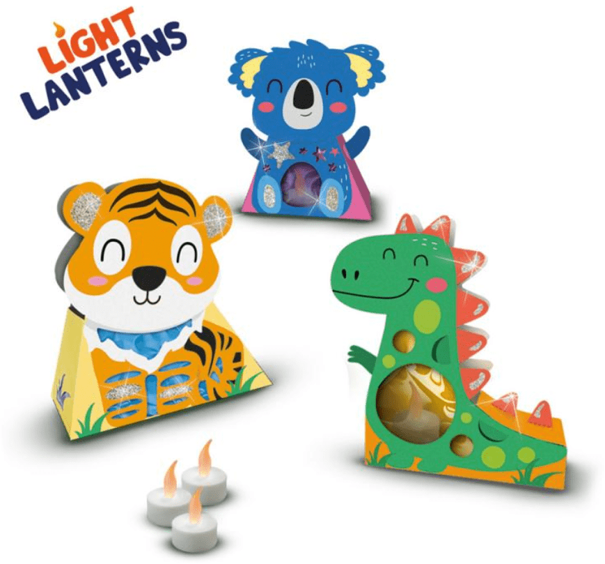 S tem kompletom SES lahko izdelate lastne živalske svetilke. Preprosto sestavite živali, jih okrasite z barvno folijo in bleščicami. V vsako svetilko vstavite svečko LED in si oglejte, kako lepo svetijo! Komplet vsebuje: 3 sveče LED (3× CR2032, baterije niso vključene), 3 živalske svetilke, 5 barvnih folij, lepilo, čopič, lepilo s srebrnimi bleščicami, navodila. Primerno za otroke od 5. leta starosti.