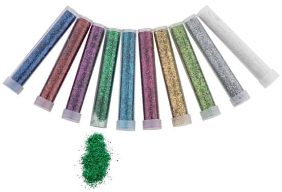 Komplet vsebuje 10 tub bleščic v čudovitih, intenzivnih barvah