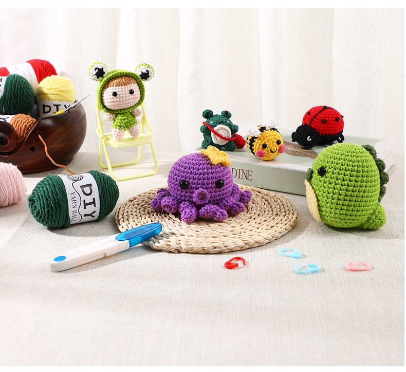 Ponujamo celoten komplet za kvačkanje ljubkih živali, ki je idealen tako za začetnike kot za izkušene ustvarjalce. Naš komplet vsebuje vse, kar potrebujete za ustvarjanje čudovitih, ročno izdelanih plišastih živali, ki bodo odlična dekoracija ali darilo.