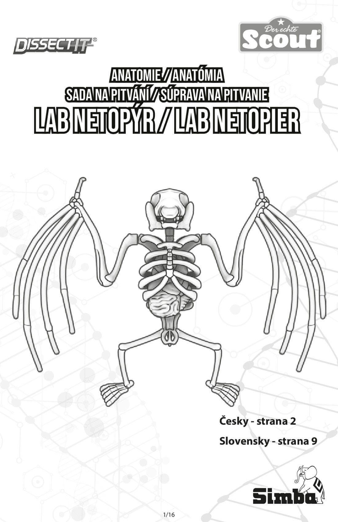 Set orodij za seciranje netopirja, katerega kosti in organi so prekriti z vijolično sluzjo. Elemente je mogoče odstraniti in pregledati vsakega posebej. Priložena je vrečka s praškom za ponovno ustvarjanje sluzi. Ko je prvo seciranje končano, organe in okostje vstavite nazaj v blister, zmešajte prašek z vodo, prelijte nastalo sluz in postavite v hladilnik. Netopirja lahko nato seciramo drugič. Velikost 15 cm.