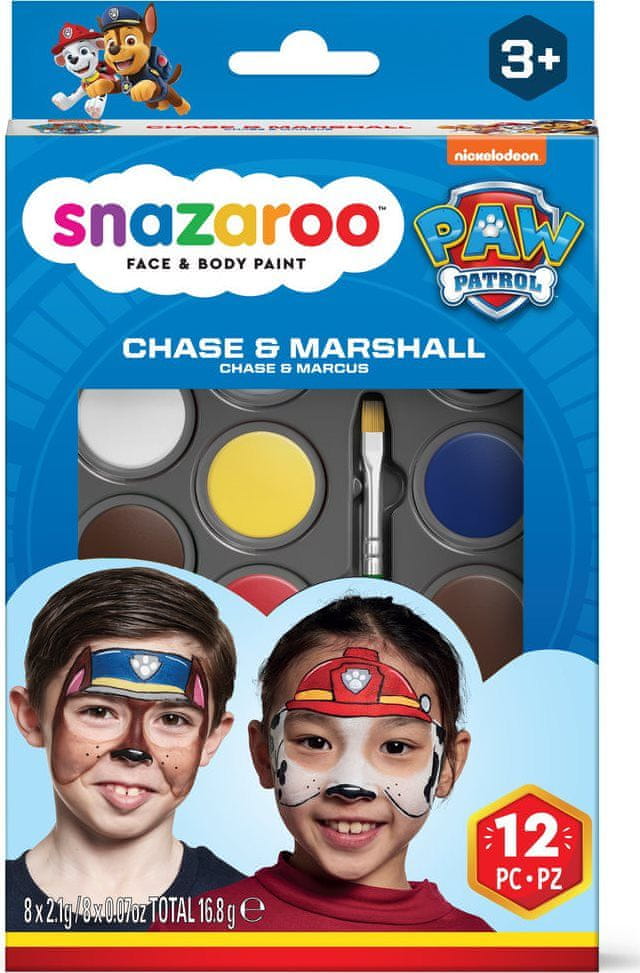 izbrane barve za ustvarjanje popolnih mask Chasea ali Marshalla idealno za otroške zabave, karnevale, praznovanja ali noč čarovnic enostaven nanos – čopič ali gobica primerna za obraz in telo obstojne, svetle in bogate barve varne in nestrupene, primerne za občutljivo kožo enostavno odstranjevanje – umivanje z milom in vodo vsebuje 8 barv, gobice, čopič, šablono in slikovna navodila