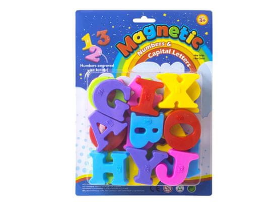 Magnetki z abecedo. Velikost črk 6×4,5×0,5 cm. Paket vsebuje 26 črk.