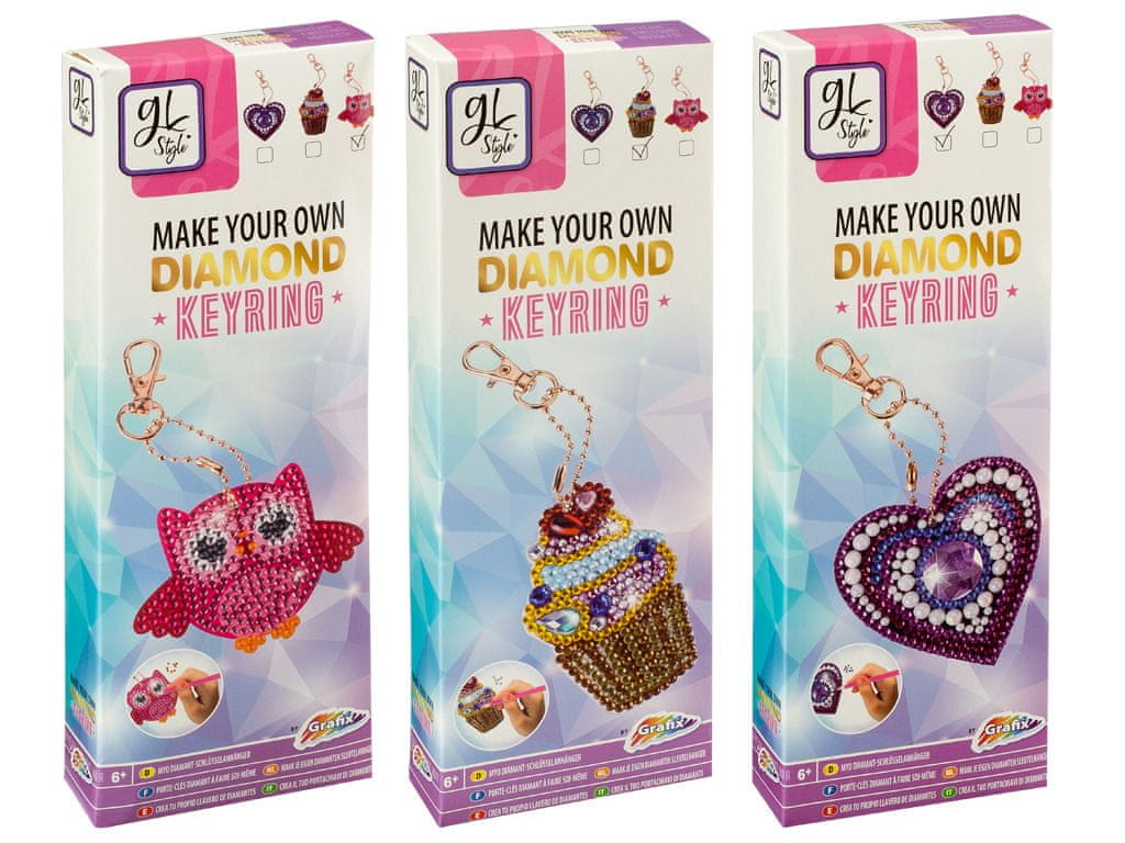 Izdelajte svoj obesek za ključe z diamantnimi kamni – 3 vrste – sova, sladoled in srce.