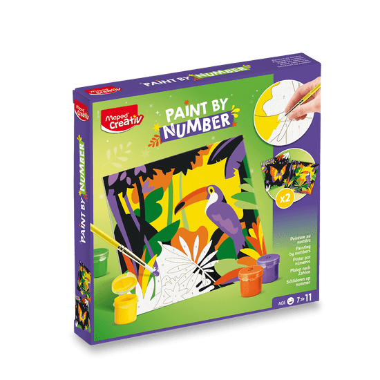 Maped Creativ Ustvarjalni set Paint by number z motivi tukana in metulja za ustvarjanje čudovitih slik s tehniko barvanja po številkah. Celoten opis
