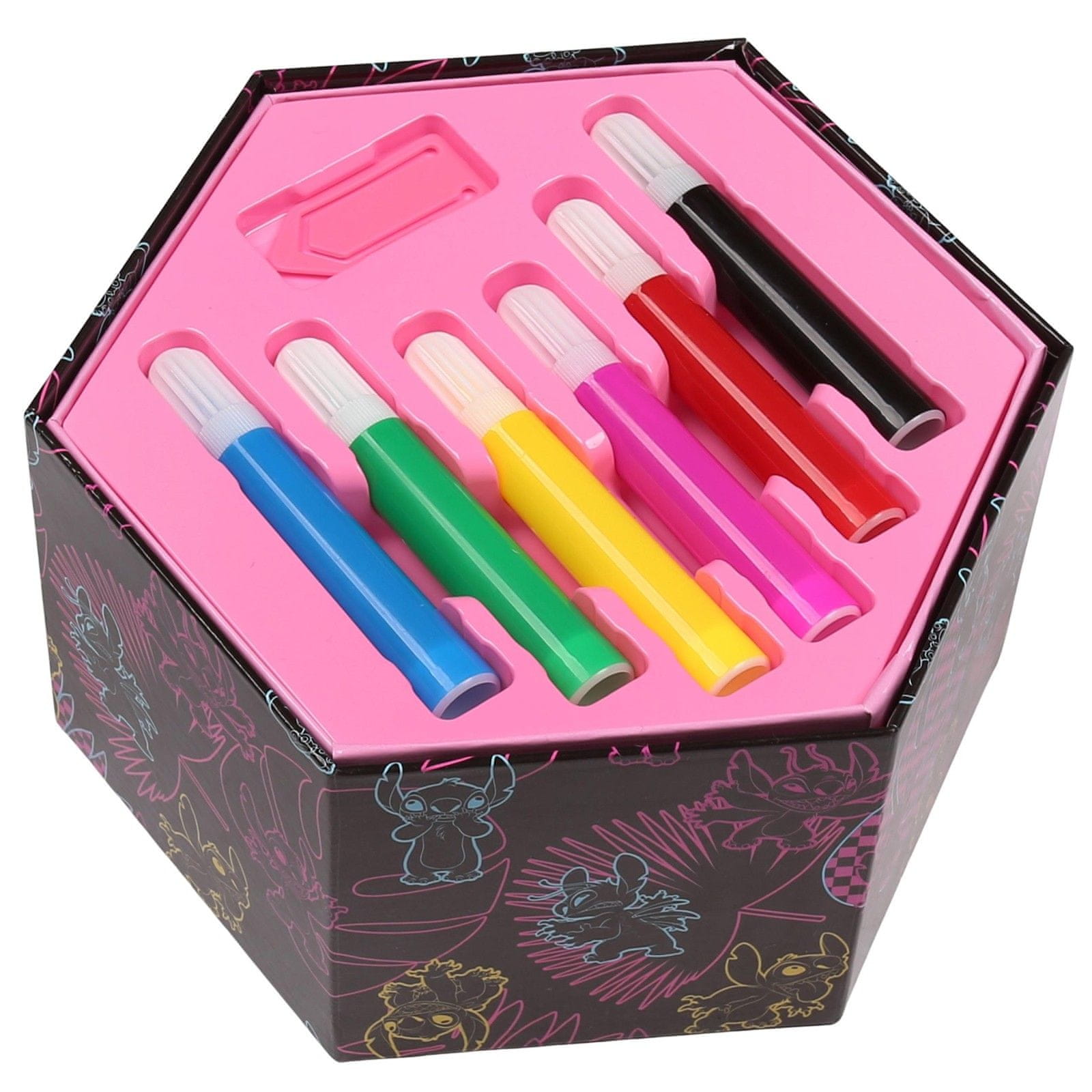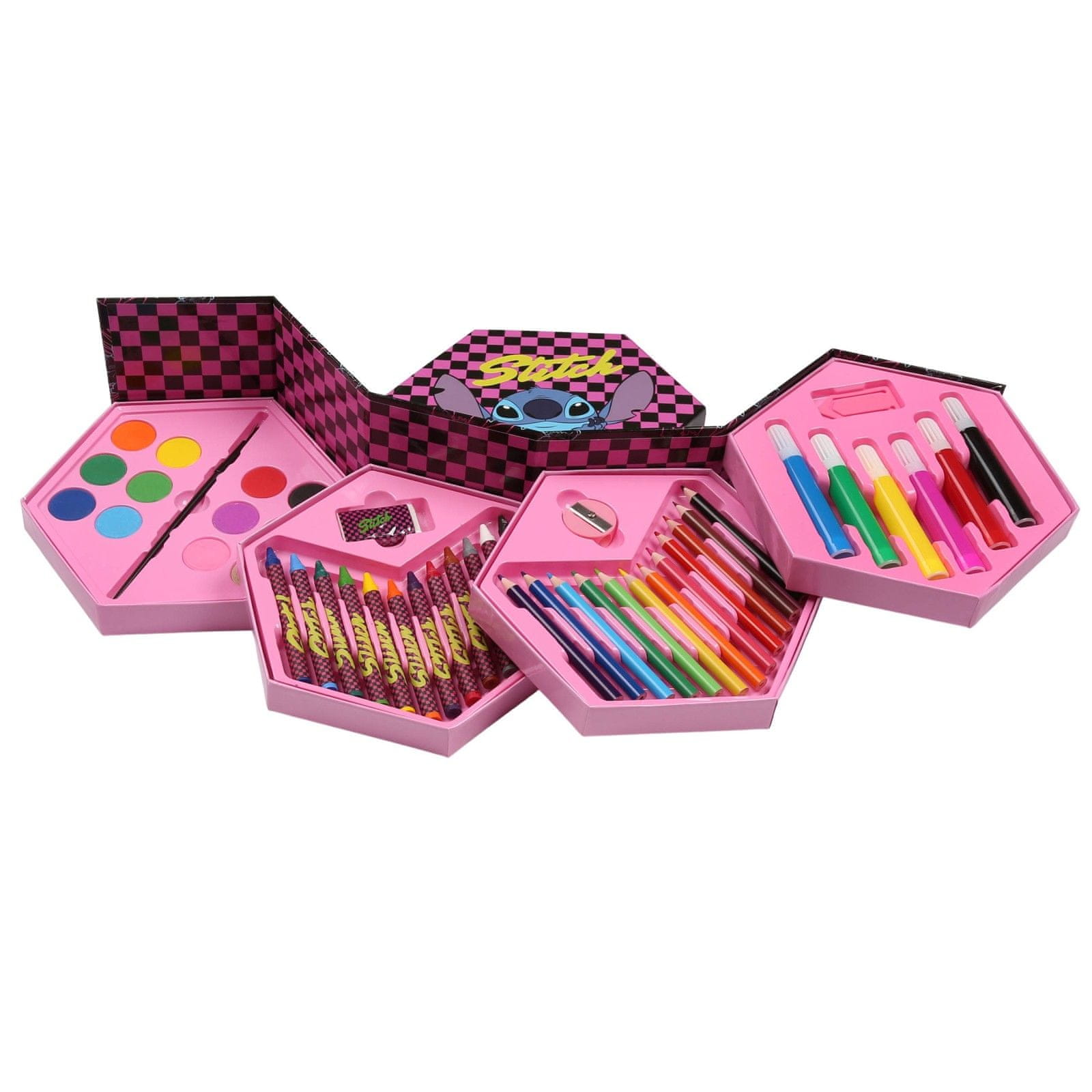 Disney DISNEY Stitch UMETNIŠKI KOMPLET v raztegljivi škatli za otroke, 46 ELEMENTOV, barvice, flomasterji, barve